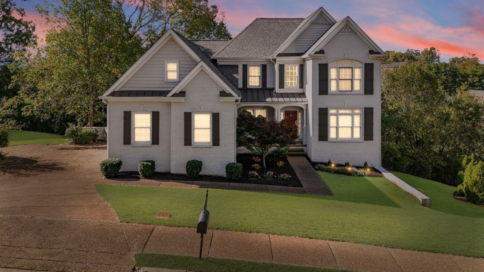 Located in the Mountain View community, this all-brick home offers 4,678 square feet of flexible living space with seven bedrooms and five and a half baths. The main level features a two-story great room with a gas fireplace, a formal dining room, and an eat-in kitchen with double ovens and a gas range. The second floor includes four bedrooms and two full baths, while the finished basement adds two additional bedrooms, and two full baths, a recreation room, and a workshop.Additional features include dual laundry rooms, a home theater, intercom system, saferoom, and several flex spaces that can serve as a home office, gym, or playroom. The fenced backyard overlooks mature trees.This home offers both space and convenience in a quiet cul-de-sac setting. It is approximately 14 miles, or about 20 minutes, from Downtown Nashville and 11 miles, or about 18 minutes, from BNA Airport. Easy access to shopping, restaurants, and major routes to Brentwood and Franklin makes this property an ideal choice for those seeking comfort and functionality in a prime location.